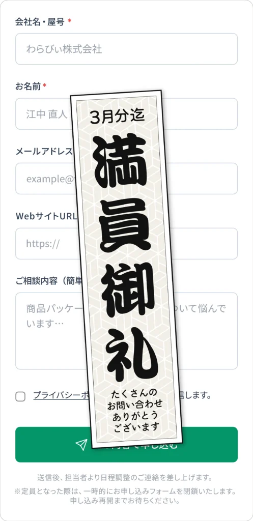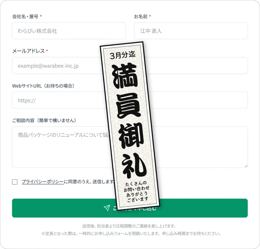 ・相談内容(貴社匿名)の弊社コンテンツ化の可能性をご了承ください